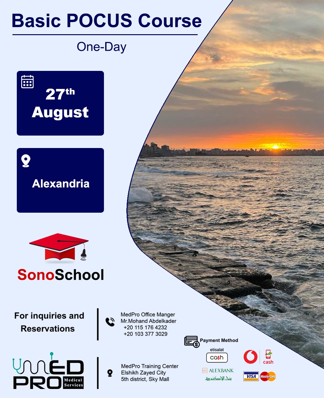 in this event you will learn how to use Point of Care Ultrasound (POCUS) to diagnose the most important Problems seen in the acute care setting, ideal for anyone who's just starting to use in the emergency department, general ward, ICU or Private Clinic, learn to use POCUS to increase your Success rate and decrease complication when performing common procedures, we Depend on hands on Training with interactive Cases and theoretical Lectures